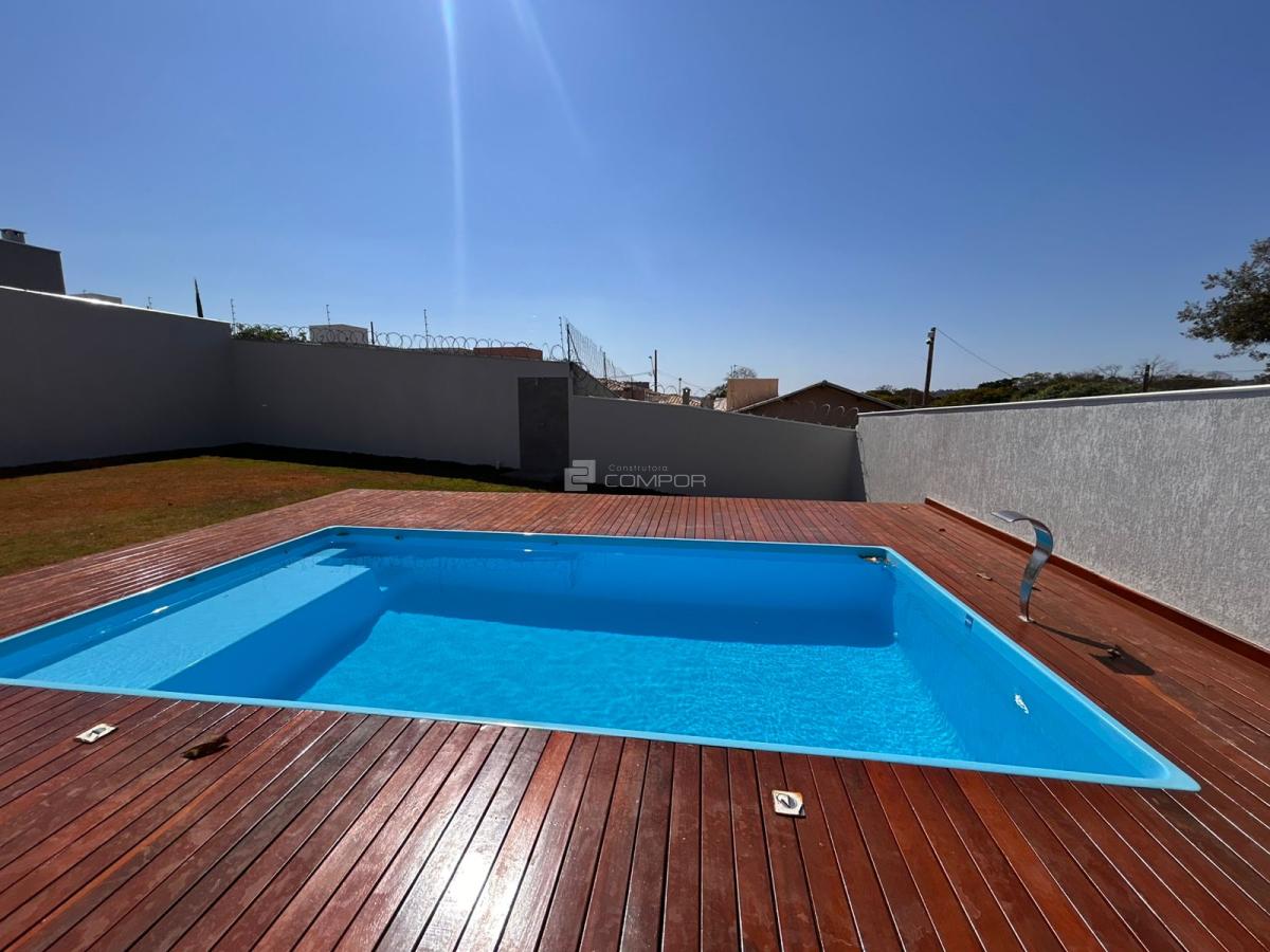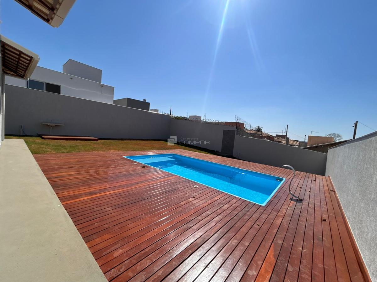 Piscina com deck de madeira